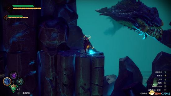最简单就是使用修改器的无线二段跳,而前往左上方的时候我们能够听到类似鲸鱼的叫声,从左下方的秘密通道一直不断无限跳的话能到达一个平台,之后经过一个平面小游戏(手残,不用无限跳不行)来到图片这个位置的时候,就能近距离接触利维坦,注意这个怪物是能碰到玩家操纵的角色的,一不小心被他撞到掉下边沿的话,你就挂了。