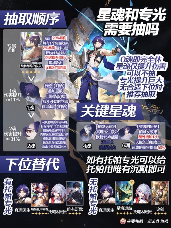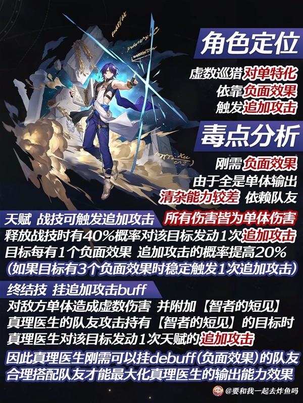 《崩坏星穹铁道》1.6版本新五星角色真理医生可以免费获得,那么领取后要如何培养出装与搭配队伍呢?请看下面由“要和我一起去炸鱼吗m”带来的《崩坏星穹铁道》1.6真理医生出装配队推荐,希望对大家有用。