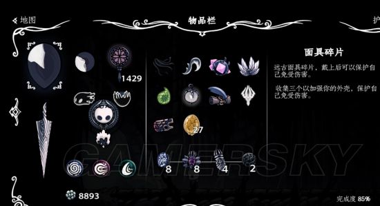 我一共有8条生命,能量多两个小球(还有一个生命碎片和能量碎片没有齐,不知道后面还有没有,地图基本都开完了,可能漏掉什么地方了)。
