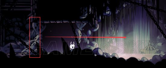 37、【天花板压至半屏】1重装斯奎特(冲刺飞虫):蓄力解决,这里威胁很大,也可以跳至它上方向下两刀再冲刺吸墙。