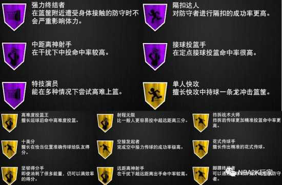 10+5的徽章组成,持球防守、挡拆躲闪、持球抢断和好斗者必补。