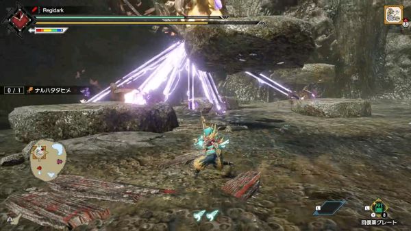 一阶段可以先在石头下面躲雷然后金刚蓄力斩拉近,但是三阶段之后这招会在手部放出三圈雷导致我们需要走位躲且后摇变短追刀变得更为困难,个人建议直接不追了,躲完雷圈在石头下面磨刀就行www
