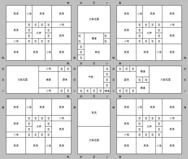 1、我这个布局也是从我一开始玩这游戏的时候就设计的,随着一次次探索,不断完善,所以并不是个YY地图。值得说明的是,这个只是你城镇中 居住区的部分,我认为整个城镇要分为 居住区 贸易区 工业区 食物生产区 和 储存区 几个重要部分。