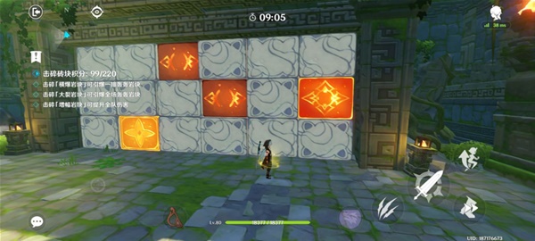 是一个“打砖块”游戏!关卡中,利用雷泽的大剑攻击墙上的「轰轰岩块」,让岩块破碎。每个「轰轰岩块」的积分为1分,单人达到220分即可通关!