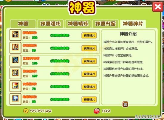 玩家收集足够的神器碎片,直接进入到神器系统的“神器碎片”选项界面,就能消耗神器碎片合成各种神器,如果有多余的神器碎片,还能在“神器升星”选项界面,对已获得的申请进行升星操作,经过升星的神器属性会变得更强大哦。