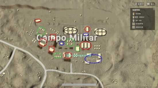 以上就是军事基地的资源点分布介绍,单双排的玩家把红色资源点搜完基本就可以毕业跑毒了,四排的队伍如果药物和时间允许的话,是可以把军事基地搜的很干净的,如果安全区的刷新或者药物不理想的话就只把红蓝标记点搜完也是很快的。