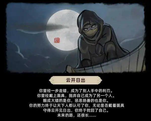燕军兵围楚襄城时选择改主意救楚襄城(退出九流门),之后逃到破庙,救叶鹏举、去九流门清理门户,拜老魔头和燕歌行为师,打赢天阶擂台,论道峰成为天下第一后获得;