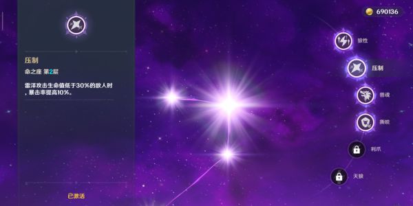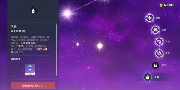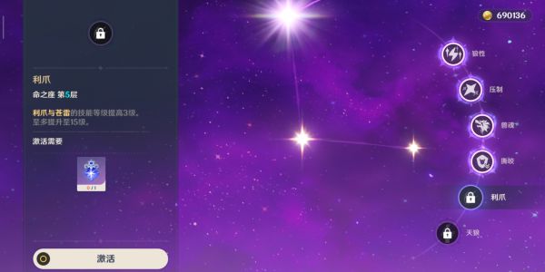 降低元素战技的冷却时间,并且在使用元素爆发的时候重置元素战技的冷却时间,能让雷泽充分叠加雷之印,间接提高回能效率,为下一轮的循环做准备。