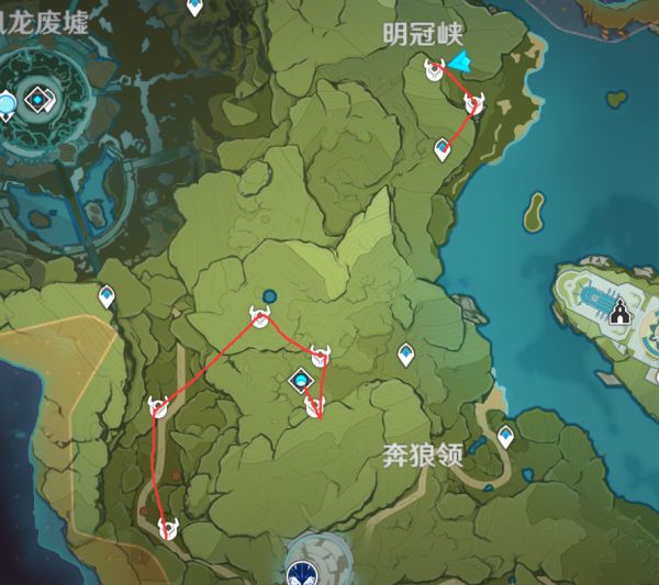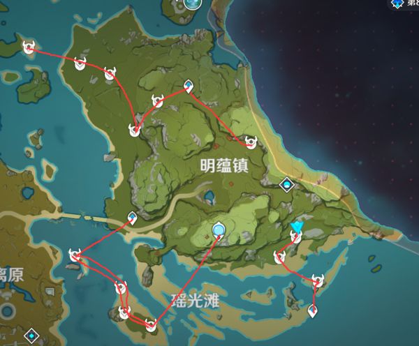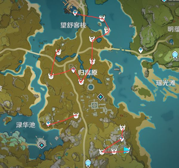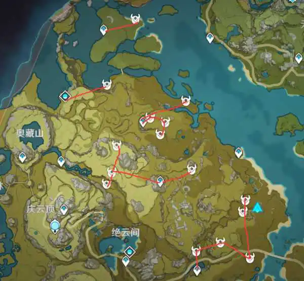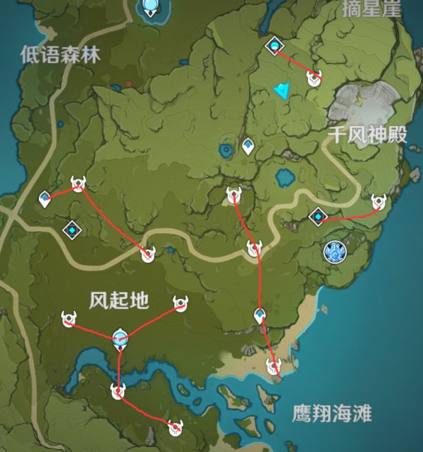 这里的丘丘人据点全部是自己花了几个小时去踩点确认了,有射箭丘丘人(最少1个)这个路线基本能同时获取箭跟卷轴2个都是很缺的材料,不敢保证是全据点但是这个量已经很大了,地图的点都是在保证一个区域全部点都能看到在内放到最大了。路线不一定要跟着走,每个人习惯不一样,标出点后按照自己习惯收集即可。
