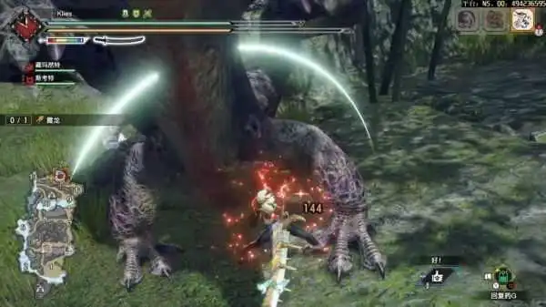 吐舌2连,范围极广,伤害先远后近,看它用舌头舔一下之后马上居合,你在它的左侧就往左面居,右侧同理,它身体两侧没判定,有红刃可以登龙。