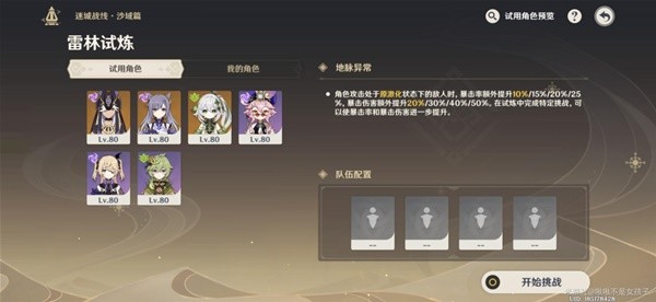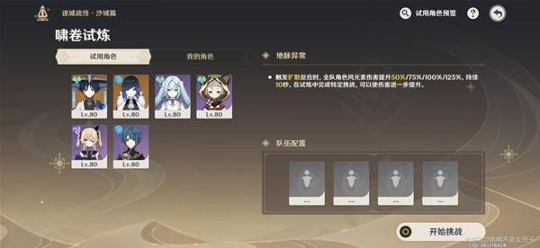 此次活动主要是让玩家熟悉并掌握元素反应和元素共鸣,有试用角色(我的角色=试用角色中我拥有的角色),试用角色继承玩家角色的命座(如我的刻晴1命,试用角色的刻晴也是1命)。