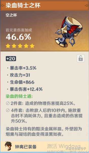 圣遗物我推荐两宗室两磐岩 队伍里没有其他角色带四宗室的可以考虑四宗室
