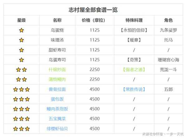 【兽骨拉面】和【什锦炒面】的食谱均可以在志村屋直接购买获得,没有的旅行者记得购买呀~