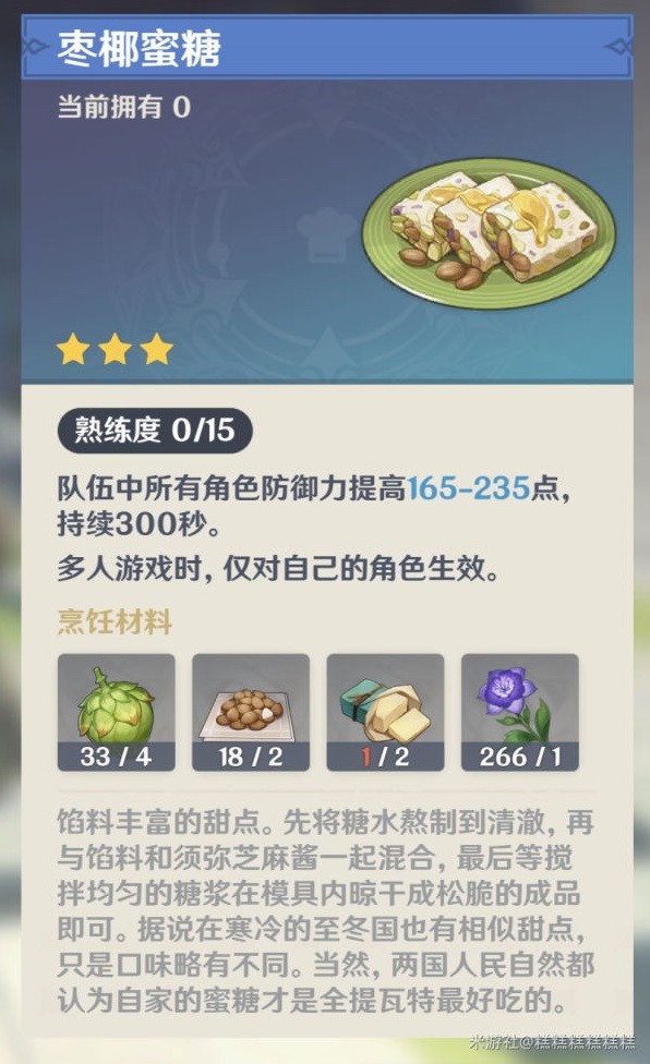 防御类料理,效果相当于莲花酥,市井杂煮。