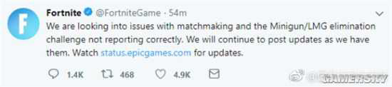 《堡垒之夜》在昨天的机枪任务中,由于BUG原因导致很多玩家使用轻机枪无法完成,官方在得知后发布公告,已经在修复BUG。