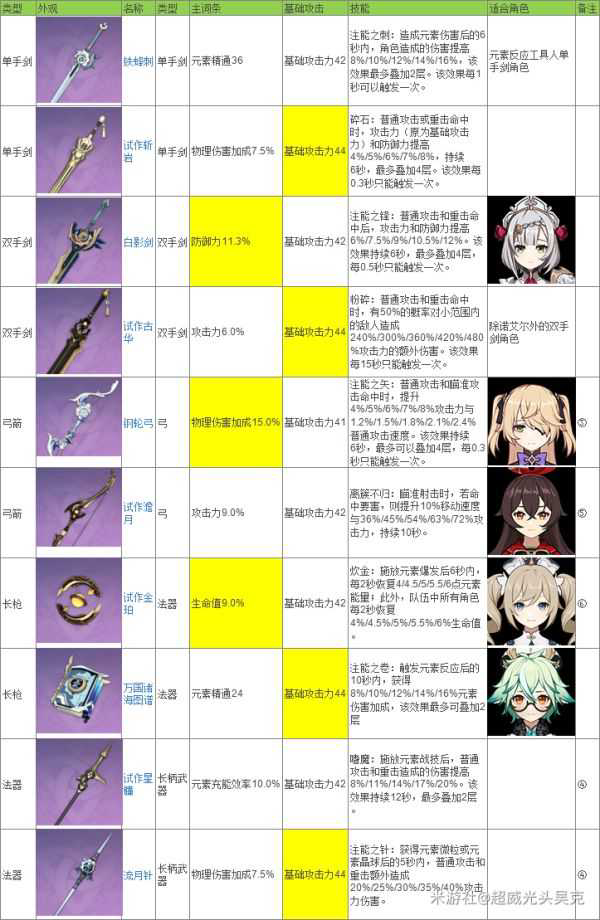 五星武器和纪行武器对于主C肯定是比锻造武器要好的,然而对于辅助和工具人锻造武器的词条和技能可能更契合。部分三星武器如讨龙英杰谭精炼容易技能强大,比起锻造武器,更适合低等级血不厚容易摸一下就死或者吃生命值属性(芭芭拉)的辅助带,下次有机会写一部全三星武器推荐。