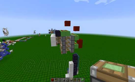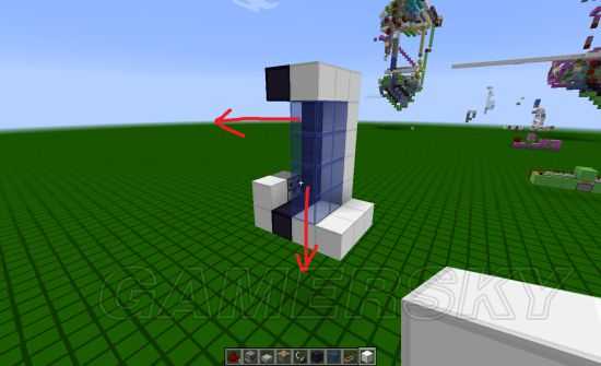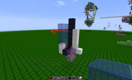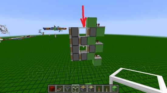 中间箭头指的那一列是普通活塞,之后红石块会替换掉这一列,推出时用后方中继器充能就行了
