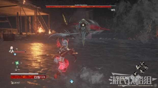 第一阶段的打法以贴身缠斗为主。她主要使用镰刀攻击,有时会使出2连击,第二招会有所延迟,即使你在她身后,也有可能被击中。有时她会进行跳跃攻击,将武器重重砸入地面,这一招还是很好躲的。