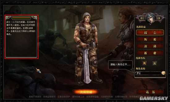 玩家输入角色名称,或者使用系统随机显示的角色名称。下图所示图标,会重新随机生成角色名称。