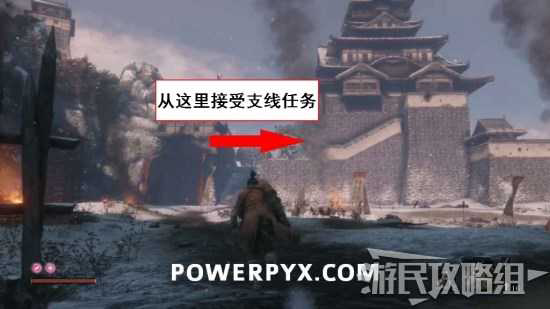 击败第一个大BOSS【鬼庭形部雅孝】之后,前往【苇名城 城邑 正门】鬼佛处。从与BOSS战斗的区域穿过去上楼(不是鬼佛的楼梯,是战斗区域另一边的楼梯,如下方第一张图所示)。从门进入大殿之后会遇到一个NPC,与他交谈之后会获得一本书,打开菜单阅读可以发现上面要求我们去击杀几种小怪(也就是老鼠,样子如下方第二张图所示)。