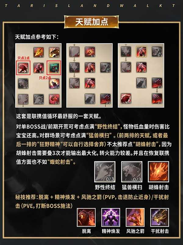 《塔瑞斯世界》中游侠是一个远程输出职业,相较于其他职业来说比较适合新手游玩,下面是由“脸叔鸽鸽”为大家带来的《塔瑞斯世界》游侠技能加点及铭石推荐,希望可以帮助到大家。