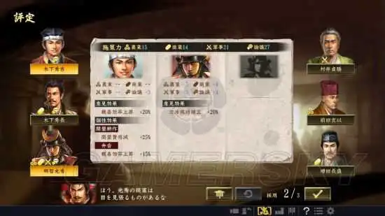 採用家臣的提桉时,是要优先考虑高施策力,以追求长期的强化,还是要採用拥有即效性的追加效果,需要玩家们慎重地判断。