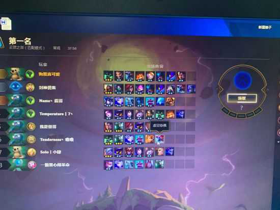 我不考虑运气爆棚,也不考虑运气差到俩羁绊都没有的情况,就玩这么多把,基本上这个时候,你应该有了两斗士,三虚空的阵容,石头人之前不升人口,不刷新。