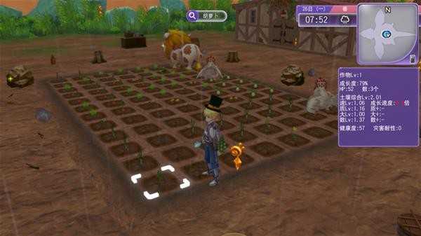 虽然在手动种田的地方,在获得银制农具以前都可以说并不便利,不过游戏胜在一点,就是可以动物种田。游戏中有大量的魔物可以用seed手环抓捕,捕获后的魔兽可以用小屋养在龙背农场内,每日会产出各种农产品(前期建议主养鸡牛产出蛋奶,都是料理大量需要的耗材,不过每种动物抓4-5只就几乎无法驯服成功了),通过刷毛供(牧)草和送礼(树枝就行)也可以培养好感度,到达3级以后就可以安排干农活了。