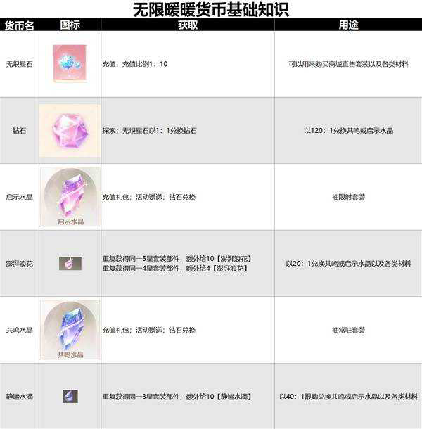 《无限暖暖》中拥有很多种货币,比如钻石、启示水晶和澎湃浪花等,那么这些货币有什么用呢?下面为大家带来《无限暖暖》货币用途介绍,希望对大家有用。