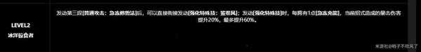 普攻使用频率最大,则提升技能等级时最优先考虑。同时冰附魔也就是【急冻充能】的获得来源靠【巡游】状态下的第一次平A和蓄力。