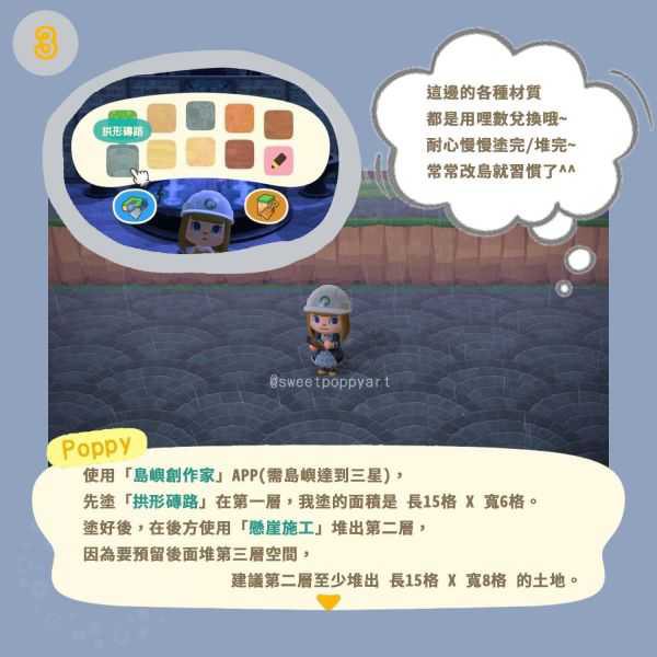 若增减格数,盖起来会跟我示范的不太一样,但可以试试看,有时自己脑洞大开、创意喷发也很有乐趣,不就是动森的迷人之处吗?