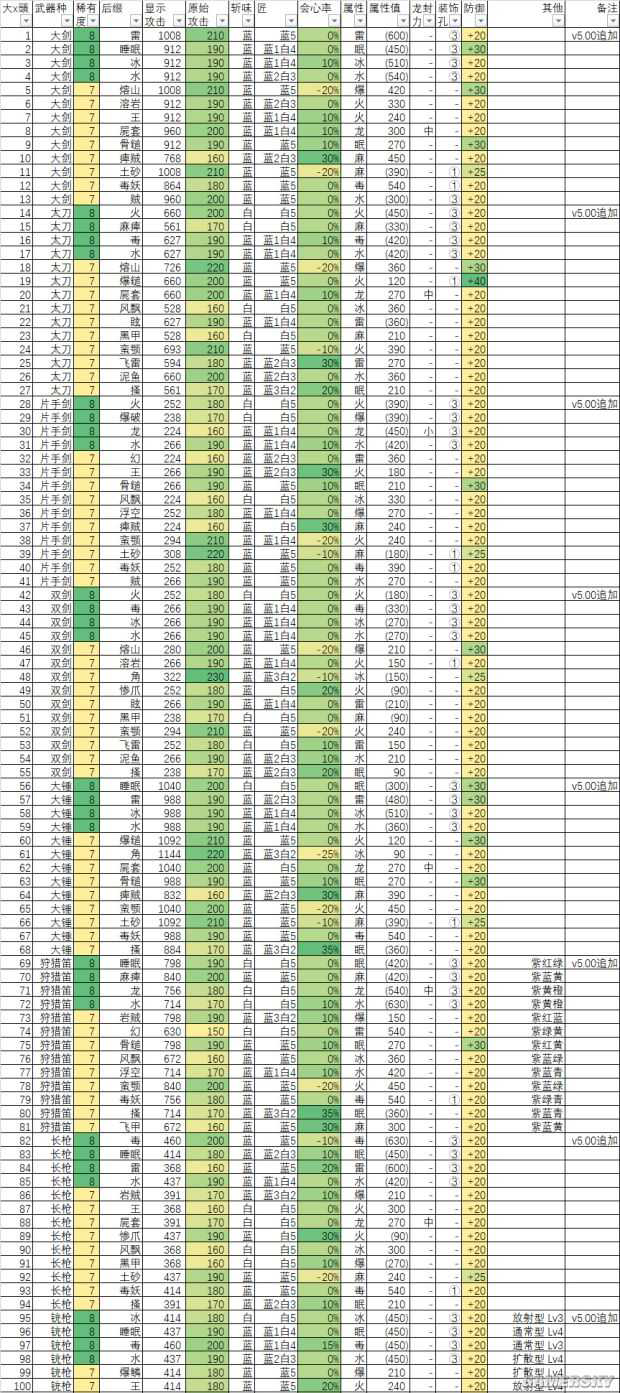 《怪物猎人世界》铠罗武器大家都刷到多少了,已经有玩家整理出了比较完整的数据表,下面为大家带来由auauroura总结的《怪物猎人世界》铠罗武器属性一览表,已经追加5.0的武器,希望对各位有帮助。
