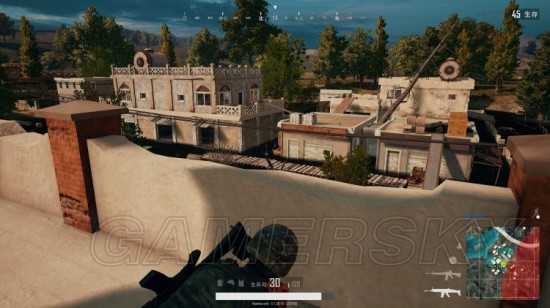 这是一个假车库和两个阳台楼组成,均有围墙,处于水城的南侧最边上,跳到这里只需要观察水城内情况就可以了,而不用担心背后有人偷袭。
