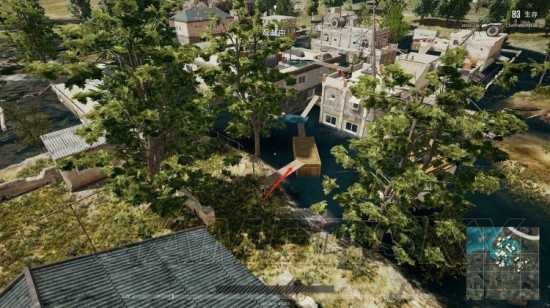 这个位置的房间密集,搜索较快,不过视野比较差,因为边上的房子观察水城内部会被树叶遮挡。