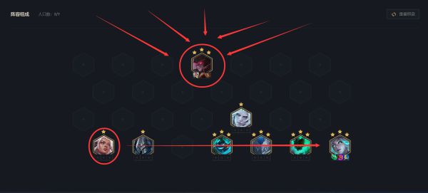 5人口如果有女枪的情况下,我们可以选择补充一个小炮凑出2炮手羁绊过渡。没有女枪的情况下直接上锤石和泰坦凑出2骑士。前期过渡尽量以少掉血,保经济为主!