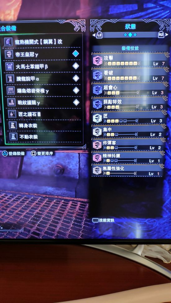 用灭尽龙γ套优化了一些配装!有热伤的重弩援交是打历战王冥灯专用的。