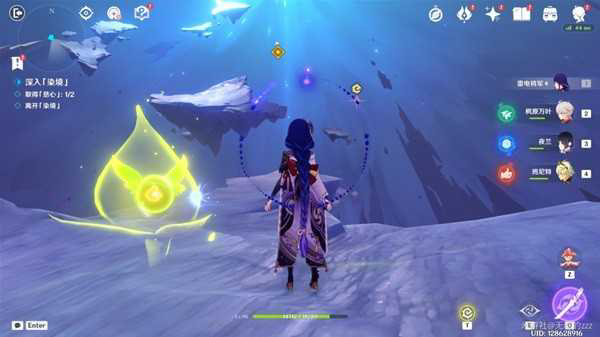 13.我们需要利用灵光,开启秘境,并且利用斯露莎,将右手边的浮空丘唤醒,这样会出现一条可以行走的路线