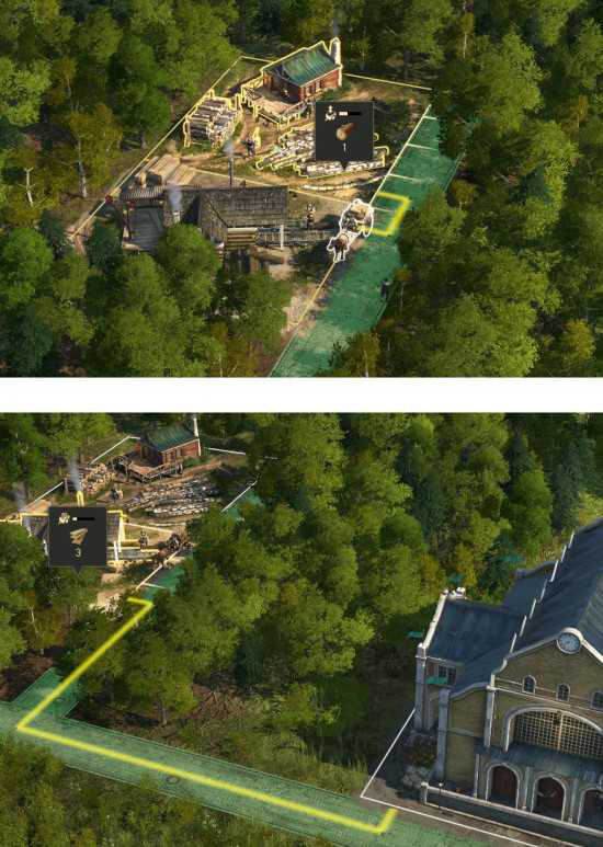 原物料生产后会运送至最近的仓库或加工厂,为了达到最好的效率,尽量把原物料与加工厂放置在一起。