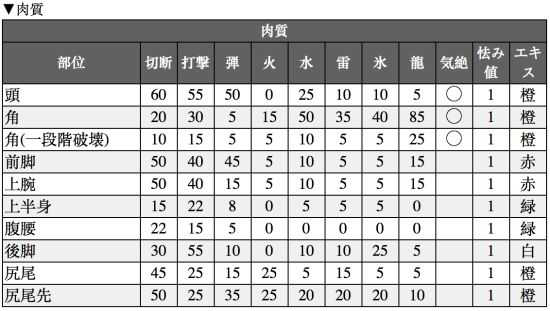 上面的肉质表显示了贝爷弱“水”和“龙”属性。虽然实战中多数击打位·手臂的“龙”吸收比“水”好,但是“帝王水棍”的物理面板远超于“帝王龙棍”,后者即便再怎么叠高属性伤害都无法弥补物理面板上的短板。其次,Solo极贝时需要打头部才能吸引仇恨,而头部的“水”吸收又是最高。所以选择“帝王水棍”无疑。