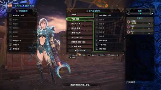 属性上赋予龙属性,因为“帝王水棍”自带“属性强化”的猎虫加成(然而实际“叮”到手臂就加了1点伤害其他部位没有变化,可有可无吧)。衣装上推荐“回避+转身”。