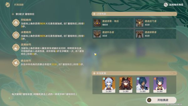 每个挑战中,需要使用活动提供的试用角色或自己拥有的角色进行连续3轮战斗。