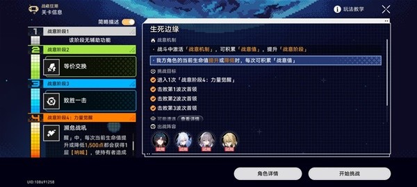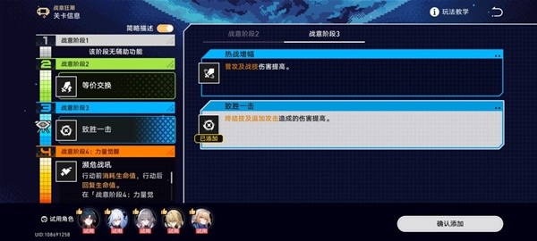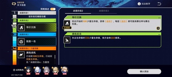 省流:战意阶段二选择等价交换;战意阶段三选择致胜一击;角色选择推荐,刃、镜流、布洛妮娅、罗刹;最后点开自动。