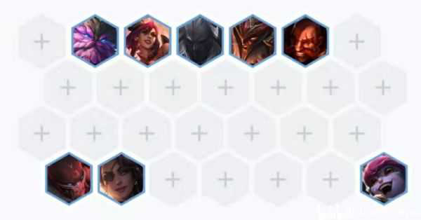 这套阵容站位很简单,大部分情况就是前后排站位,如果不会找对位的话布隆撤到排保证奥拉夫最早吃到龙魂BUFF。因为猪妹技能有延迟,所以猪妹和剑魔站在一起,大概率是可以控到剑魔拉过来的英雄的。