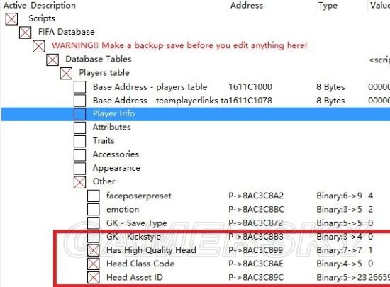 这个CT表最强大的地方就是球员编辑了,加纹身换发型。通过内存直接修改数据库,堪称神器。从17开始功能越来越强大。