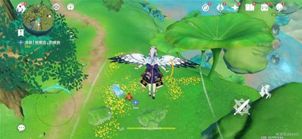 收集15个绿色的种子,如果找不到,就用雷元素打这朵蓝色的花就好了