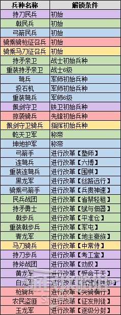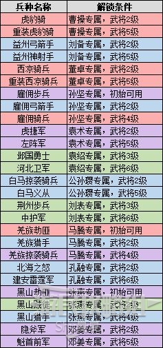 《三国全面战争》中有一些兵种是需要达成一些条件才能解锁的,比如虎豹骑、白马义从等经典兵种,那么那些兵种应该怎么解锁呢?今天就给大家带来《三国全面战争》兵种解锁条件,给各位做个参考。