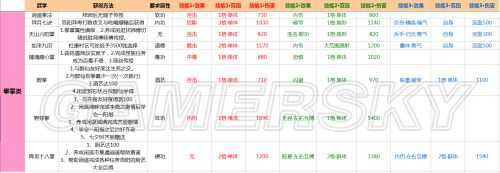 将所有的外功资料和内功资料进行了一次系统的整理和汇总,感觉还是表看起来更舒服,