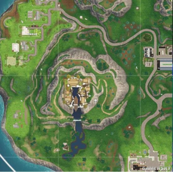 最后就是地图的中心点:仓库。从以前的三个大仓库,后来的第四赛季到来陨石给砸出了一个大坑,在第四赛季结尾的时候慢慢长出了几棵大树,再到第五赛季遍地都是树木。