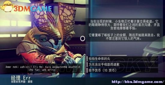 如果你探测到信标,也有机会拿到蓝图。通过信标找到外星人的住处,需要做一道选择题,满足他们的愿望才能拿到蓝图。