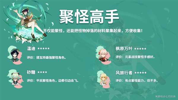 《原神》的大世界中包含很多种材料、解谜要素,很多角色在玩家大世界跑图冒险的时候回有很大的帮助。下面请看由“七月的休”带来的《原神》大世界功能性角色盘点,一起来看看吧。